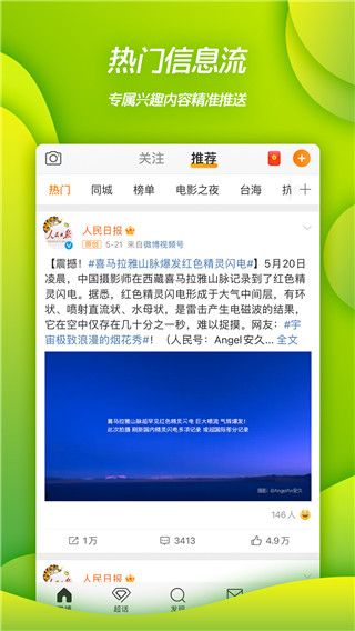 1.实时动态:用户可以查看好友、关注对象和热门话题的最新动态,了解最新的新闻、娱乐、体育等方面的资讯。