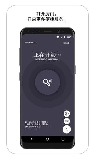 您可以使用您的手机在指定酒店开门或探索酒店的其它区域。
