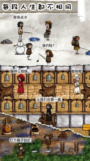 在游戏中,你有时是一个刚出生只会哭的孩子,每分钟长大一岁。长大后要帮家人工作:收集、种田、做饭、打猎、织布、盖房子。能力越大,责任越大!