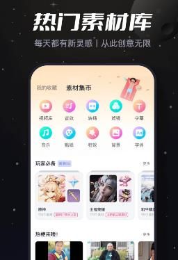 3.大量的动态素材库,包括音乐、图片、视频等,用户可以根据需要自由选择添加到自己的视频中。