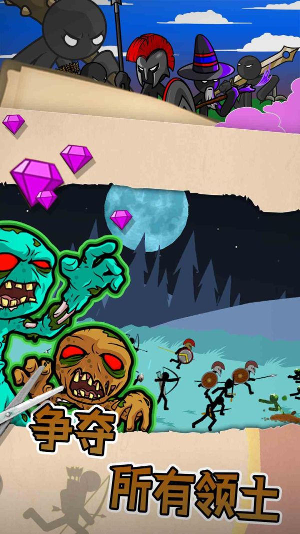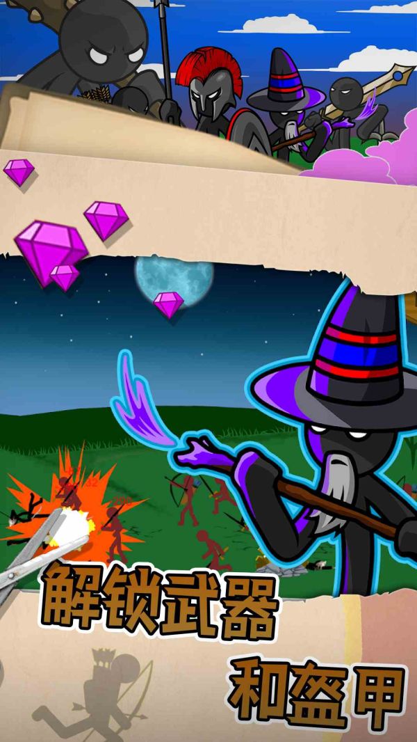 3、以灵活的战斗技巧,参加战争,与火柴人英勇作战,挑战未知,创造未来。