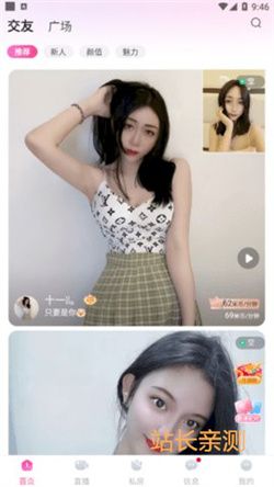 2、交友直播开启,通过这款软件可以认识到很多有趣的直播美女;