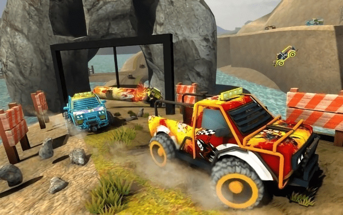 2.在阳光明媚的海滩上,玩家需要驾驶超级英雄特技越野车进行各种搞笑有趣的特技极限车技动作,不同的车等着你升级解锁各种车,还有很强的超能力和敌人激烈竞争。