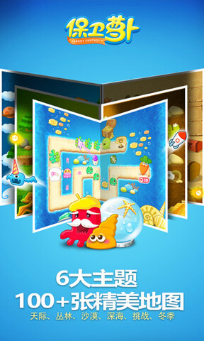 保卫萝卜是一款制作精美、画风可爱、超萌的策略游戏。游戏有着经典的卡通风格,不仅容易上手,还适合所有年龄段的人,可以给玩家带来无限的乐趣。在保卫萝卜游戏中,你的任务就是保护可爱的萝卜,不要让怪物吃它,所以你要使用多变的战斗策略去保护可爱的萝卜。游戏有数百张不同的精致地图,和各种功能塔炮,这样你就可以体验和感受不同的御策略决斗。精美的游戏画面,全新的策略,可爱的萝卜,总有一点你喜欢,赶快来下载保卫萝卜体验吧!