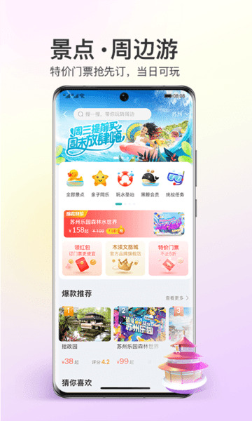 2、周边游:返现,红包立减,玩周边,总有一个你喜欢的。周末完美攻略带你玩。high周边;