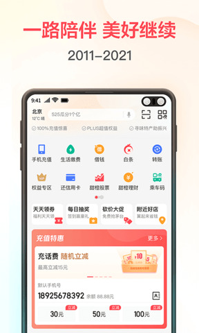 免费跨行转账(知道手机号可以转账).信用卡还款.电影票.火车票.红包等服务;