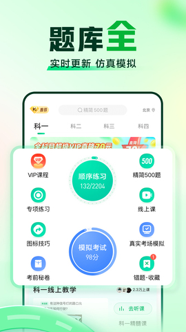 提供科目一.科目四国内通用题库和地方题库实时更新,与时俱进。模拟真实考场,模拟考场真实界面,帮助用户提前熟悉考试界面,稳定心态,事半功倍。