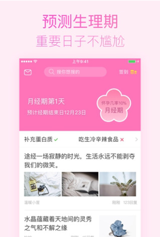 软件帮助呵护你的经期健康、身体养护,女孩儿还是要对自己好一些。