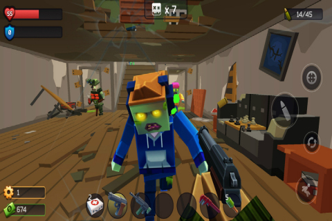 极限挑战-疯狂特工游戏是一款第一人称像素风射击游戏,玩家将抵御一大群僵尸在一个封闭的房间里的入侵,你可以使用各种武器和枪支,巧妙地使用房间里的各种陷阱屏障开始疯狂地输出敌人,不断地打败和消灭各种敌人来完成任务。任务成功完成后,将获得大量资源。玩家可以购买更强大的武器,扩大武器库,建立秘密基地,在末日保持警惕,拯救人类。极限挑战-疯狂特工游戏除了远程武器的各种力量选择外,还可以选择近战武器与僵尸搏斗。