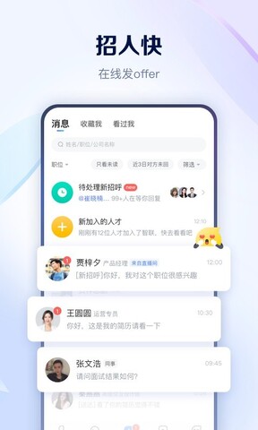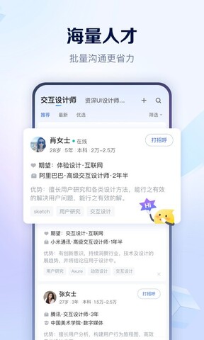 2.直接面试,轻轻一点,敲定面试。省去复杂的交货环节,直接到达。