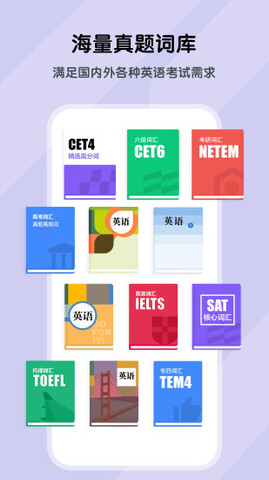 4.内置高考词库、四级词库、六级词库、考研词库、雅思词库、托福词库等经典英语词库。