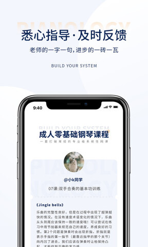 科学钢琴app提供的文章内容都是非常的丰富,还能让你将自己弹奏的曲目录下来,软件内有很多的钢琴谱子,更有非常专业的钢琴课程供你学习。科学钢琴app里入驻了多位专业的钢琴老师,为大家带来了很多专业的钢琴课程,想学钢琴的朋友可以通过该平台学习,获得老师一对一指导教学,让你轻松学会弹钢琴。讲基本原理,讲方式,打造出适合年轻人的钢琴课程内容,根据了解歌曲、享受歌曲的方法,让你真真正正享受学习钢琴和练琴的全过程。
