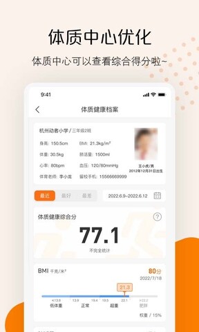 2.教学管理系统,学生端,避免家长录制计数的监督麻烦,一键收发上传体训细节,提供最便捷的体训打卡流程。分享和鼓励,排名机制,让孩子有更积极的运动态度。教师端,教师可多维度,单项、组合式的发布体训活动。可查询班级,记录个人体育细节,轻松掌握学生体育数据信息。点评机制,加强师生互动,指出学生体育薄弱环节。