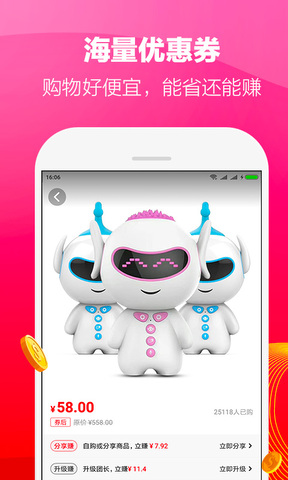 与百万天猫京东等一线商家合作,每日推出近万件大额内部优惠券,只专属供给好省用户。