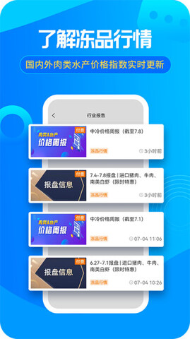 2.软件会通过冻品指数和价格周报,定期发布猪肉价格、牛肉价格、各种海鲜和水产品的羊肉价格。