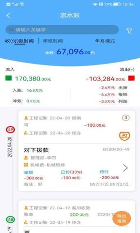 5.一键记录项目全部流水,了解项目盈亏情况,提高记账效率。