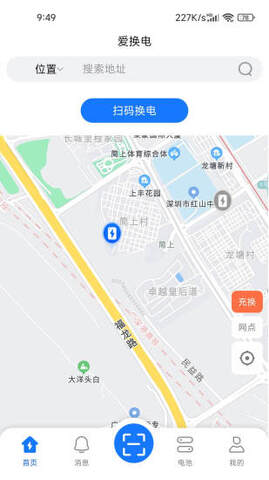 1.地图定位查找周边换电柜,预约换电,扫码换电,离线换电,提供24小时换电服务。