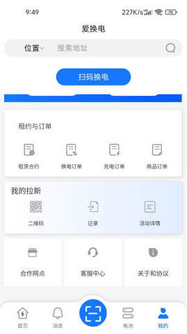 4.扫码换电:通过应用主界面“扫码换电”功能扫描AI智能换电柜二维码完成换电。换电过程中可查看换电过程。换电后可查看换电记录。