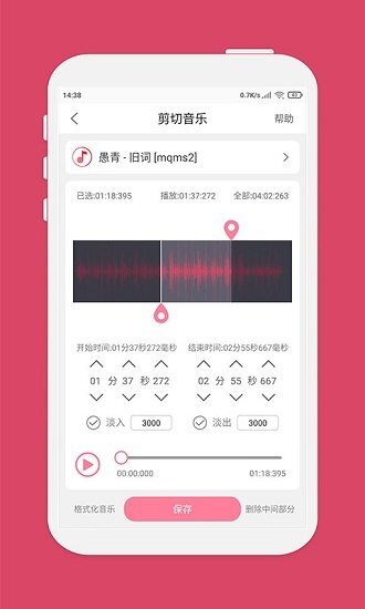 1.音频剪切,本地音乐库,定制音频剪切范围,剪出你想要的特别精彩。