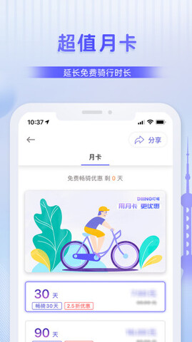 不限次数,30天免费畅骑,购买季卡更优惠!