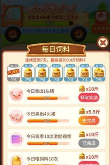 1.从零开始养猪生活,经过长时间的等待,看着猪逐渐长大,回收就能得到金币。