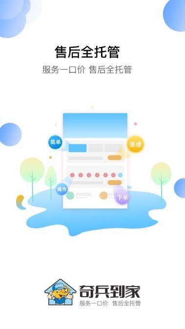 目前,奇兵到家app里的业务包括智能锁、家电、家具、浴室、壁纸、地板、门窗、浴霸、衣架、窗帘等家居装饰服务,还拥有完善的服务体系、严格的大师准入制度和培训管理机制,业务范围覆盖全国600多个城市近3万个县、区4万多个乡镇。奇兵到家app的用户可以在这里找到相关的大师来帮助你解决生活中遇到的所有问题,专业的事情由专业的人解决,丰富的分类让你准确地找到自己的需求,还免费入驻,注册登录即可下单。给你更好的服务体验。