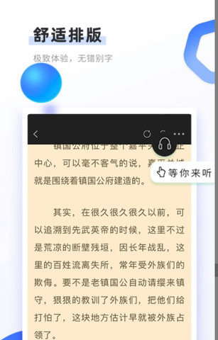 4.功能丰富,多彩主题、多种字体、仿真翻页、上下滚动、左右切换、智能书签等你来发现。