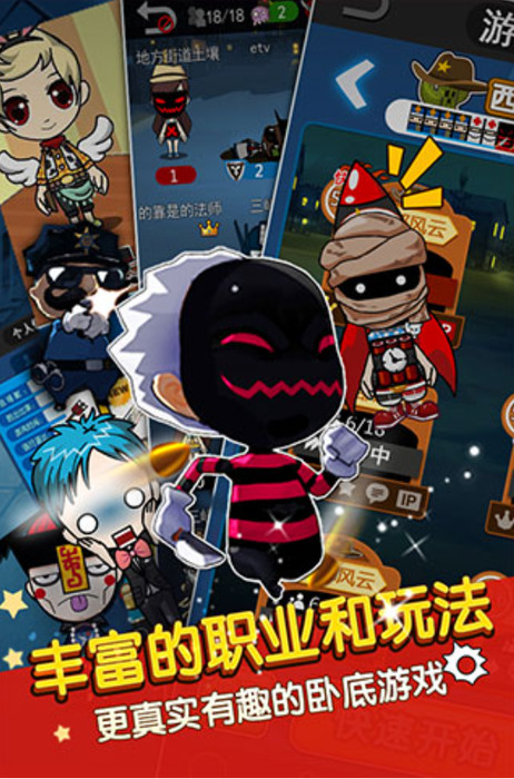 谁是卧底是一款非常优秀的文本推理互动游戏。不再害怕人员不完整,不再害怕场外因素!谁是卧底游戏为您提供了许多模式,酷炫的特效以满足您的不同需求!真正的多人参与,智力和运气游戏的竞争。超级可爱的形象,有成千上万的服装设计,数亿的组合!三个阵营,十多种职业,每个职业都有不同的游戏玩法和技能!谁是卧底游戏创建了最新的模式“怒火街头”燃烧世界之火与秩序之烟,带您领略超酷体验,在比拼智力的同时领略不一样的策略战队,让游戏不再枯燥!