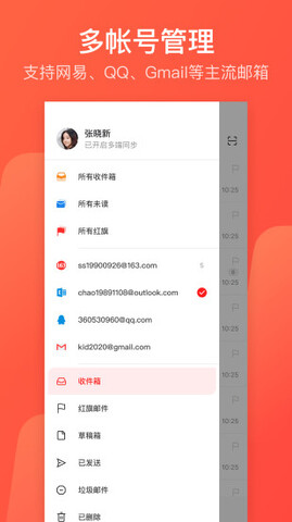 3.统一管理多个账号。登录大师号,无论你有多少账号,都可以统一管理,联系人、来信分类等信息也可以跨设备同步。