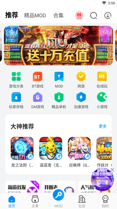 变态游戏(BT)可以让练级更轻松,游戏更轻松。在线发送钻石、锭和金币.VIP等级,八门神器也会保持每天更新当下流行的变态游戏。