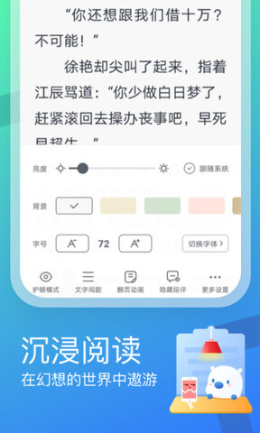 4.舒适阅读,支持自定义排版、听书、书签、夜间模式、阅读笔记等特殊功能,提高阅读质量。