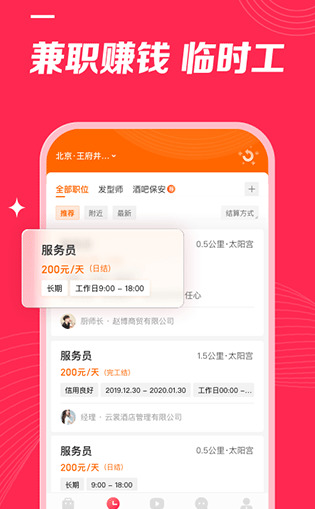 1.岗位真实,离家近,严格的岗位审核机制保证岗位更真实,根据定位推荐附近的岗位。
