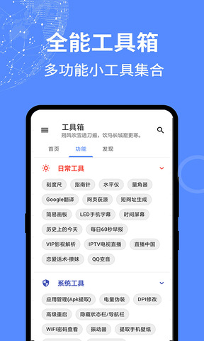 该APP提供文字、图片、设备、清洁、文件、计算、查询等相关工具,基本满足您日常使用手机时所有工具的需求。