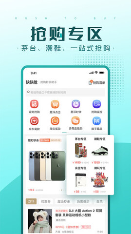 5.快速抢购多个平台的秒杀抢购商品,飞天茅台,热门手机,潮鞋潮玩,一网打尽。