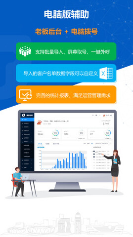 支持PC终端是否合作,可定制导入客户名单的数据字段,完善的统计报表,满足运营管理的需要。