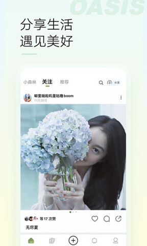 社交平台上的朋友越来越多,但愿意分享现实生活的人却越来越少。有时候我觉得我不喜欢分享我的生活。但是现在「绿洲」在里面,生活似乎永远是美好的,所有有爱的生活都可以分享。被看见.被滋养。