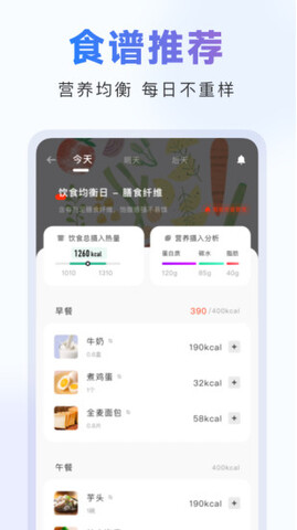 3.建议饮食搭配,根据锻炼计划提供健康的饮食食谱。