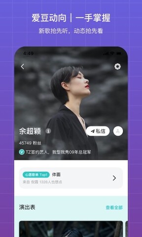 4.立即关心自己喜欢的歌手的动态,与他进一步接触,接听最新歌曲。