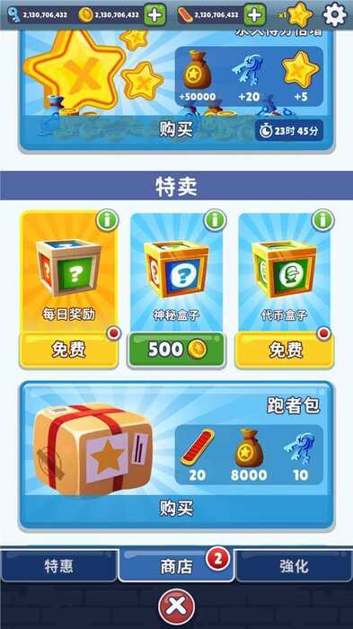 1.地铁跑酷游戏还为玩家设置了每日挑战任务,每天可完成一次,并获得特别奖励。