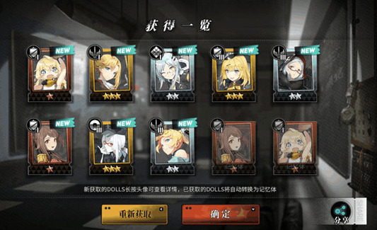 2.遵循指导,在列装管理局中选择新人限制列装解禁,即可连续10次获得DOLLS,而且一定要得到一个三星DOLLS。据说欧气爆棚的代理人,还能得到多个三星DOLLS哦。