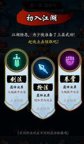 3.通过关隘认识江湖剑客,勇敢武艺,提升队伍实力,从而达到称霸武林的大目标;