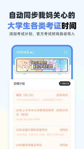 1.超级课程表app直接与高校教务系统对接,可以直接将课程表导入手机。课程信息一目了然,有课堂提醒、成绩查询、考试倒计时等功能,让你的学习和生活更加方便。