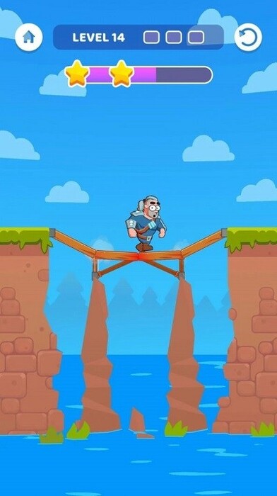 造桥大师是一款可玩性很高的休闲益智手机游戏。在游戏中,玩家需要学会建造一座非常稳定的桥梁,帮助角色完成任务。在造桥大师游戏中,玩家需要面对不同关卡中的鸿沟,必须建造一座足够稳定的木桥作为到达对岸的媒介,这意味着玩家必须研究桥梁的支架点和受力点放在哪里,这样才能一次通关,现在角色的命运掌握在你手中,你需要仔细思考建造的过程。造桥大师游戏中,如果你的桥很牢固,那么通过就没有问题,但是如果你没有用心, 前进的英雄就会掉到下面的深海里。