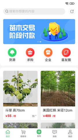 2.货源丰富:大量苗木标准化资源,多维精准搜索。