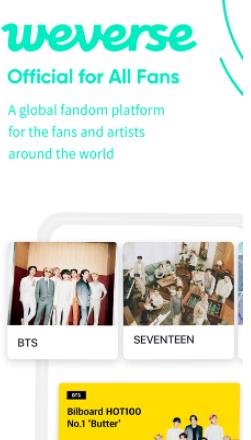 weverse安卓下载的这款软件是一款明星社区软件,专为广大粉丝团准备的。weverse安卓下载的这款软件中可以了解最新的韩国明星情况,更有着韩流社交的区域,大家可以在这里认识更多有着相同idol的朋友,有着相同的追星话题等,分享自己喜欢的追星情况,而且weverse平台入驻中的明星会在线和粉丝交流,实时更新最新的生活动态等。分享明星的美好时刻,表达对他们的喜爱,和全世界的粉丝一起交流。喜欢就快来下载体验吧!