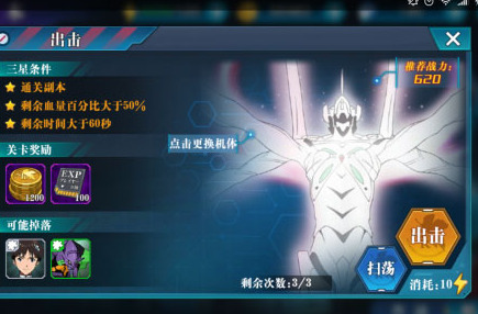 3.游戏以新世纪福音战士为题材,将战场重现在游戏中,玩家在游戏中可以选择多种机甲进行战斗。