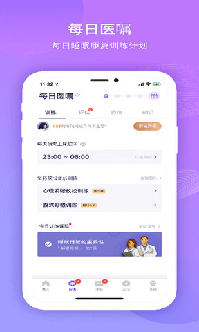 1.康复中心:根据病人的病情,提供每日睡眠康复视频,以及与视频相关的辅助指导,如睡眠、起床时间、放松训练音频等。