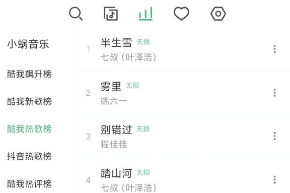 2.歌曲排名,各种类型的排名,可以根据自己的兴趣自由选择试听,也可以在线下载。