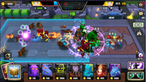 玩家根据兵种的属性、技能、定位进行排兵布阵,战士将会自行移动、进攻和施法!