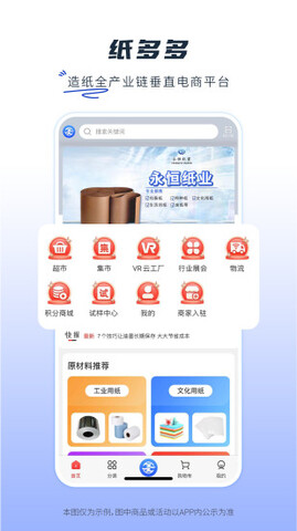 纸多多是一款专门为造纸行业设计的应用。软件采用云EPR结构技术,结合专业的物流运输渠道和B2B交易模式,可以快速流动造纸相关的原材料和成品,以极低的价格供应给厂家和经销商,打造全新的纸张生产和销售形势,形成完善的供应链体系。纸多多中,用户可以随时了解行业的最新动态信息,还可以进行网上交易和物流订单查看。有需要的用户,快来免费下载吧!